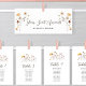 Fleur sauvage Boho Chic Whimsical moderne Mariage floral Numéro de table Cartes de siège Carte avec nom d'invité. Tous les textes sont pré-arrangés pour que vous personnalisiez facilement et rapidement avec vos propres détails.