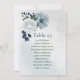 Belle carte de sièges botaniques avec fleurs romantiques blanches, bleues poussiéreuses et bleu marine avec feuilles verts. POUR PLUS DE PRODUITS CORRESPONDANTS cliquez sur la collection ci-dessus ou contactez-moi.