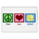 Cartes Softball Peace Love avec un joli signe de paix, coeur, et balle.