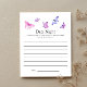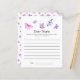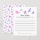 Élégantes et fantaisistes cartes de conseils de date de mariage / fête prénuptiale sur le thème papillon avec illustration aquarelle de papillons roses et violets. Demandez aux invités de remplir cette carte pendant la fête. Ce sera un excellent souvenir !