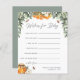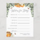 Demandez aux clients du baby shower de partager leurs souhaits pour bébé avec ce design doux. Placez une cheminée à l'entrée de l'événement, passez-les ou laissez-en une à chaque endroit. Fait une tenue de conservation amusante pour la future maman aussi, lorsqu'il est compilé dans une jolie boîte ou un classeur. Conçu pour s'adapter à notre collection de baby showers Orange Blossom Honey, ce design d'inspiration naturelle estivale présente un feuillage vert aquarelle, un pot de miel et de minuscules illustrations d'abeilles domestiques. Personnalisez avec la mère le nom et la date de baby shower de l'être le long du bas.