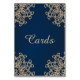 Une belle saphir bleu marine JEWEL TONED et mariage d'or carte numéro de table avec un sari exotique d'inspiration indienne MEDALLION motif AVEC UN DESIGN FLORAL ET LOTUS SUNBURST. Cette belle carte de style indien élégant et moderne est parfaite pour toute occasion formelle AVEC UN THÈME DE NUITS D'ASIE ORIENTALE MOROCCAINE ALADDIN OU ARABIENNE. Il peut être personnalisé avec le nom de la mariée et du marié et la date du mariage. Conçu par Chrissy H. Studios, LLC. Tous droits réservés.