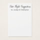 Voici un accessoire amusant à ramasser pour votre fiançailles ou douche conjointe : cartes de suggestion de jour de nuit sur lesquelles les invités peuvent écrire des notes personnelles à la mariée et au marié. Sur le devant vous lisez "Suggestions de la Nuit de Date" dans une police de script élégante et moderne ; cette police est modifiable pour que vous puissiez en choisir une autre si vous préférez... ou même écrire un autre message. En dessous, il y a un endroit pour vos noms. Tous les mots sont présentés en noir sur un arrière - plan blanc modifiable. N'hésitez pas à me contacter si vous avez des demandes spéciales ou avez besoin d'autres articles. Je suis également heureux de vous aider à personnaliser ces cartes si vous en avez besoin. //