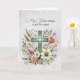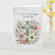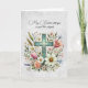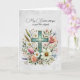 Une belle carte de sympathie avec une croix turquoise et un étalage floral à côté.