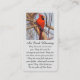 Carte de service funéraire moderne avec un bel oiseau cardinal rouge perché sur une branche. Conception d'une peinture à l'huile impressionniste originale du peintre d'art Daniel Fishback. Le verso de la carte est également personnalisable pour le nom et les dates de vos proches. Nous espérons que cette carte avec sa belle Bénédiction irlandaise vous donnera un peu de paix en cette période difficile.