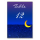 Une carte de table recto verso à l'art vintage d'une nuit étoilée avec une lune brillante en croissant contre un arrière - plan de bleus et de violets.