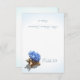 Grand coquillage conque rempli de fleurs, lis et hydrangea bleus. Carte de table à thème de plage élégant pouvant être personnalisée et commandée individuellement.