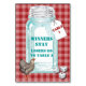 La carte de table de style rustique et champêtre rouge en vichy est parfaite pour votre événement "Hill Billy" ou "western" à thème Bunco. Le design comprend un chèque rouge en vichy arrière - plan, un pot vintage de mason, du poulet "ressort" et trois dés de Bunco chanceux. Carte 2 sur 3