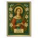 Cette élégante carte de table de mariage catholique présente Sainte Lucie, vierge et martyre, représentée dans un style chromolithographique classique avec une couronne de lys et une palme de victoire. Tenant un plat avec ses yeux miraculeusement restaurés, elle nous rappelle la lumière du Christ qui ne faiblit jamais.