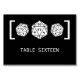 Cette carte de numéro de table de mariage de dés D20 en noir est parfaite pour le couple un peu geek qui est tombé amoureux d'un intérêt commun pour les jeux de rôle sur table et qui prévoit un mariage sur le même thème. Ce design original présente un trio simple et minimaliste de dés à vingt faces. Facile à personnaliser, il suffit d'ajouter les détails de votre mariage dans les champs de texte fournis. Cliquez sur "Personnaliser" pour trouver plus d'options de personnalisation.