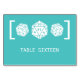 Cette carte de numéro de table de mariage de dés D20 en turquoise est parfaite pour le couple un peu geek qui est tombé amoureux grâce à un intérêt commun pour les jeux de rôle sur table et qui prévoit un mariage sur le même thème. Ce design original présente un trio simple et minimaliste de dés à vingt faces. Facile à personnaliser, il suffit d'ajouter les détails de votre mariage dans les champs de texte prévus à cet effet. Cliquez sur "Personnaliser" pour trouver plus d'options de personnalisation.