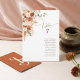 Ajoutez une touche d'élégance à votre réception de mariage avec cette carte de table de réception de mariage élégante boho. Conçue avec un style simple mais sophistiqué, elle présente un script de calligraphie, une verdure botanique d'eucalyptus et une typographie unique. Les tons orange brûlé et terre cuite créent une ambiance chaleureuse et bohème qui complète tout cadre élégant ou formel.