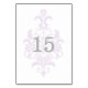 Simple avec élégance chic décrit cette subtile carte Mariage damassé Table avec un arrière - plan léger et humide lavande. Cette carte de table élégante est parfaite pour un mariage moderne et peut être facilement customisé avec un ou des numéros de table ou vos détails de mariage. Pour plus d'options de personnalisation, cliquez sur le bouton Customiser.