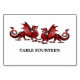 Parfait pour un imaginaire sophistiqué jeu de table à thème mariage est ce nerdy et unique Elegant Dragons Mariage carte numéro de table avec une paire vibrante de dragons rouges. Facile à customiser, il suffit d'ajouter le ou les numéros de table appropriés dans le champ de texte fourni. Cliquez sur "Customiser" pour trouver d'autres options de personnalisation.