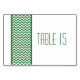 Chic et moderne Chevron Border Table Numéro Card avec une bordure simple chevron motif en vert foncé et blanc. Ce design élégant donnera le ton à un mariage élégant. Facile à customiser, il suffit d'ajouter le ou les numéros de table appropriés dans le champ de texte fourni. Cliquez sur "Customiser" pour trouver d'autres options de personnalisation.