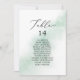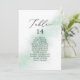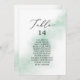 Ces cartes de classement en nombre de sièges de table vert aquarelle sont parfaites pour un mariage moderne. Le design simple et classique présente une touche d'eau verte à la sauge pastel avec un style minimaliste et élégant. La carte s'imprime à l'avant et à l'arrière (double face).