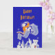 Le design provient d'une affiche théâtrale vintage où se trouve un homme faisant du moquette magique au-dessus des châteaux. Le graphisme a été réalisé par l'artiste Richard Halls, créé en 1936 ou 1937 et parrainé par le Federal Theatre Project (New York, N.Y.). Cette affiche a été créée pour une présentation de "A Hero is Born" d'Andrew Lang au théâtre Adelphi, 54ème rue à l'est de la 7ème Avenue à New York. Sur cette carte de voeux, seul le design est utilisé pour créer un salut d'anniversaire heureux. Vous pouvez modifier le libellé de cette carte.