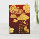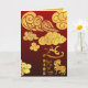 Nuages Auspicious dorés + coupé en papier du Cheval doré, "Année du Cheval" doré (écriture manuscrite originale), salutation dorée en chinois et grand or 2026 original écrit en style calligraphie + idéogramme du Cheval (police). Tous les éléments peuvent vous être déplacés comme vous le souhaitez. Conception sur carte de voeux standard verticale avec arrière - plan rouge foncé dégradé + textes pour customiser à l'intérieur sur papier texturé doré (image imprimée). Carte postale de vacances, invitation, fournitures artisanales, matériel de fête et plus (bientôt)... Parfait pour un Nouvel An chinois traditionnel et moderne du Cheval 2026.
