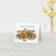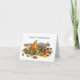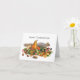 Un écureuil présente une abondance de fruits et de noix de la récolte sur un tas de lichen sur cette carte de Thanksgiving amusante.