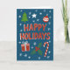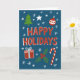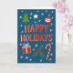 Envoyez de la joie cette saison avec une carte de Noël fantaisiste avec des gribouillis dessinés à la main, des arbres, des baubles, des étoiles et des flocons de neige. Une façon ludique mais sincère de se connecter avec des proches et partager une joie festive qui se sent personnelle et unique. Placez-vous sur un arrière - plan bleu.
