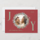 Envoyez des voeux de vacances chaleureux avec cette élégante carte de Noël Joy avec un arrière - plan rouge croustillant et un feuillage vert et rouge fabuleux encadrant votre photo de famille. Les lettres "J" et "Y" sont écrites en vert sage, ajoutant une touche joyeuse au design. Le "O" abrite la photo de famille dans la couronne. La carte est personnalisable avec les détails de votre famille et inclut le message de Noël parfait à l'intérieur, ce qui en fait une façon attentive et personnelle de célébrer la saison.