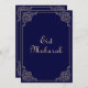 Carte de vacances à plat islamique musulmane Eid Mubarak. Eid al-Fitr. Fond bleu marine foncé classique avec un rouleau doré victorien et une police de caractères de luxe. Vous pouvez personnaliser la couleur de fond et changer le type de police également. Types de papier disponibles à choisir.