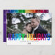 "Joyeuses Fêtes !" Cette carte de vacances photo vous permet de montrer votre photo préférée à vos proches. Un message de vacances coloré aux couleurs de l'arc-en-ciel et des flocons de neige pendus sont imprimés sur votre photo. Facile à personnaliser en bas pour un message sincère personnalisé. Fait partie de notre collection de vacances arc-en-ciel.
