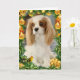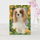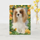 Il s'agit d'une carte de vacances avec une photo originale d'un jeune, adorable Blenheim Cavalier King Charles spaniel, entouré d'une décoration de vacances dorée.