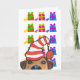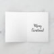 Carte de vœux de Noël avec un chien mignon portant un chapeau de Père Noël et des cadeaux en arrière-plan. Joyeux Noël à l'intérieur. Disponible en petit et grand format avec un choix de finition mate ou semi-brillant. Le texte peut être modifié et des images peuvent être ajoutées.