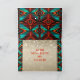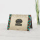 Personnalisez cette carte de Noël "unique" de Kokopelli du Sud-Ouest ! Elle présente un Kokopelli jouant de la flûte avec des notes de musique sur un fond de Noël beige avec des flocons de neige, entouré de bordures turquoise, orange et noires et les mots inspirants... "Paix sur Terre" !