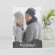 Un motif en fibre noire et grise à coquilles sur une texture lin met en valeur votre photo préférée sur ces cartes de Noël de vacances. Votre message personnel et vos noms au dos.