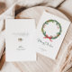Aquarelle de la feuille de pin couronne de Noël avec houx, cônes de pin et arc rouge. Personnalisable avec vos salutations de vacances à vos proches.