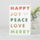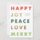 Une carte de vacances typographique moderne avec un type audacieux et lumineux dans une variété de couleurs et feuille d'or et une photo de client à fond saigné sur le dos.