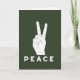 Cette carte simple de vacances comporte une illustration d'une main faisant le geste de paix dans le blanc sur un fond vert-foncé avec une salutation de mot simple : PAIX. La conception simple est parfaite pour envoyer un message non confessionnel simple de paix pendant les vacances. Employez le gisement de modèle pour customiser le message intérieur sur cette carte.