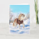 Célébrez la saison avec cette carte de vacances enchantante qui présente une superbe illustration à l'aquarelle d'un cheval islandais trottant joyeusement dans un paysage hivernal scintillant. Avec sa crinière flottante, sa robe pie riche et son expression fougueuse, cette race adorée prend vie dans une scène sereine de neige fraîche, de lumière matinale douce et de beauté tranquille.