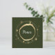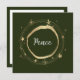 Partagez le message de paix pendant cette période de fêtes. Une belle étoile moderne de couleur or entoure le mot Paix. Fond vert. Ajoutez votre propre message personnel. Carte parfaite à envoyer à la famille et aux amis pour leur faire savoir que vous pensez à eux pendant la période des fêtes.