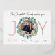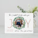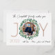 Carte en feuille d'aluminium véritable qui peut être personnalisée avec votre photo (avant et arrière), année, nom de famille et prénoms, y compris le message de salutation. L'élément principal est le mot JOY qui est imprimé en feuille d'aluminium (l'année est également en feuille d'aluminium). Le O du mot JOY sert de cadre à votre photo et est non seulement encadré par la lettre en feuille d'aluminium, mais également par une couronne d'eucalyptus aquarelle. Au verso, il y a de la place pour une autre photo et vos nouvelles annuelles - OU - supprimez le texte exemple et laissez-le vide.
