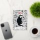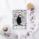 Un chat noir avec une barbe et un chapeau de Père Noël entouré de flocons d'argent tourbillonnants sur cette carte de vœux de saison spéciale en aluminium.