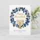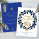 Célébrez l'Hanoukka avec grâce et tradition en utilisant cette belle carte de vacances avec une menorah dorée entourée d'une luxuriante couronne florale d'aquarelle en bleu, bleu marine et rougissant. L'élégante écriture d'or saluée et le message entièrement personnalisable sur le dos le rendent parfait pour envoyer des souhaits chaleureux à des amis et à la famille. Personnalisez-vous avec votre nom de famille et votre année pour créer un souvenir significatif qu’ils chériront.