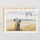 Partagez la JOIE avec votre famille et vos amis avec cette carte de vacances moderne et épurée avec une seule photo. Le verso présente un motif à carreaux gras. Personnalisez cette carte plate avec votre nom, année et photo horizontale sur le devant. Choisissez parmi un large éventail de types de papier. Sélectionnez la carte rectangulaire de 5" x 7" ou ajoutez une forme de bordure découpée. Les articles assortis sont disponibles.