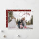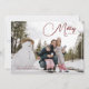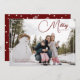 Photo complète Merry & Bright carte de voeux de vacances avec amour du texte et cadre d'angle blanc arrondi en bordeaux.