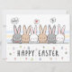 Carte de vacances Joyeuses Pâques avec lapins de Pâques et œufs de Pâques