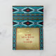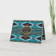 Personnalisez cette carte de Noël Kokopelli Southwest "unique" ! Elle présente un Kokopelli Southwest turquoise jouant de la flûte avec des notes de musique sur un fond de Noël doré et des étoiles, entouré de bordures turquoise, rouille et noires et les mots édifiants..."Paix sur Terre" !