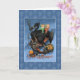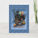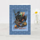 Carte de voeux Krampus avec bordure bleue de la tête de Krampus. "Fais attention. Salutations du Krampus" à l'intérieur.