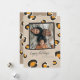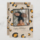 Une carte de vacances empreinte de léopard pour cette famille amusante qui aime vivre la vie sauvage. Des taches de léopard bien jouées encadrent votre photo de famille et il y a de l'espace sur le dos pour une autre photo et une note de la famille.
