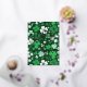 Cette carte présente un motif shamrock en vert avec le mot Joyeux Saint Patrick en feuille d'or.