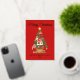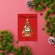 Elégante carte de vacances sans photo avec un arbre de Noël en Patchwork festif orné de décorations et entouré de cadeaux enveloppés. Personnalisez la carte en ajoutant un message d'accueil personnalisé, votre nom de famille et l'année en papier doré. Ajoutez un message personnalisé à l'intérieur de la carte ou laissez vide pour écrire le vôtre. L'arrière de la feuille d'or Patchwork sapin carte comporte un arrière - plan rouge