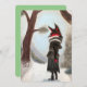 Carte de vacances peinte à la main Renard d'hiver. Jolie et unique carte saisonnière conçue avec des pastels doux peints par moi. Renard de conte de fées sur un chemin d'hiver habillé d'un manteau et d'une jupe noirs. Trouvez rare. Saisissez aujourd'hui !