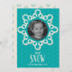Une carte de vœux moderne et mignonne pour les fêtes avec une photo personnalisée avec un grand flocon de neige sur un fond bleu à motif de flocons de neige. Personnalisez-la avec votre propre photo. La plupart des éléments de conception/texte peuvent être déplacés/modifiés/supprimés selon vos préférences. Contactez-moi à sika_273@yahoo.com si vous souhaitez la carte dans une couleur ou une taille différente. Merci de visiter !