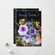 Trouvez cette jolie carte de vacances orientale avec des roses et des fleurs bleues violettes sur un fond noir avec des nuances de rose et de vert.